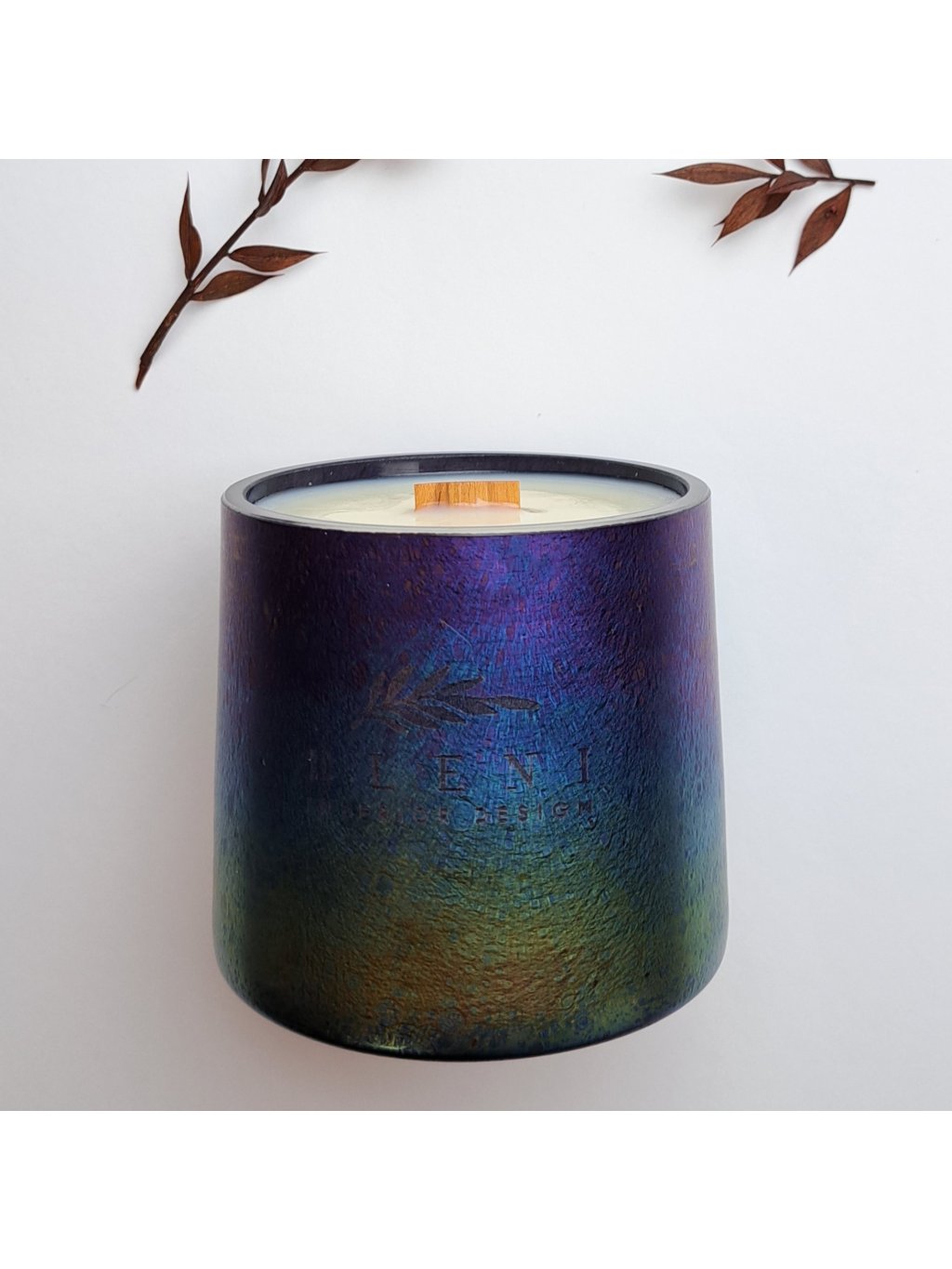 Svíčka je připravena v originálním designovém skleněném obalu, vyrobeném sklářským ateliérem na zakázku. Každá sklenice je originál