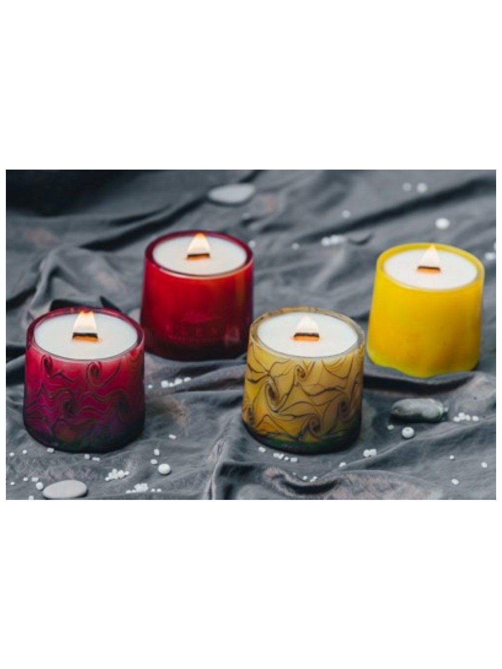 Svíčka je připravena v originálním designovém skleněném obalu, vyrobeném sklářským ateliérem na zakázku. Každá sklenice je originál