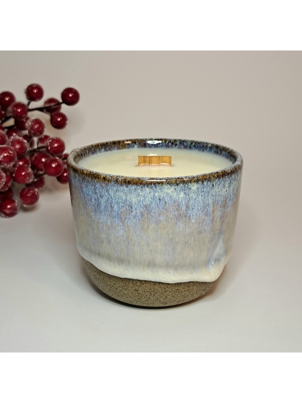 Svíčka je odlita do originálního designového keramického kalíšku, vyrobeného v keramickém ateliéru BALANCE CERAMICS na zakázku. Každá sklenice je originál...