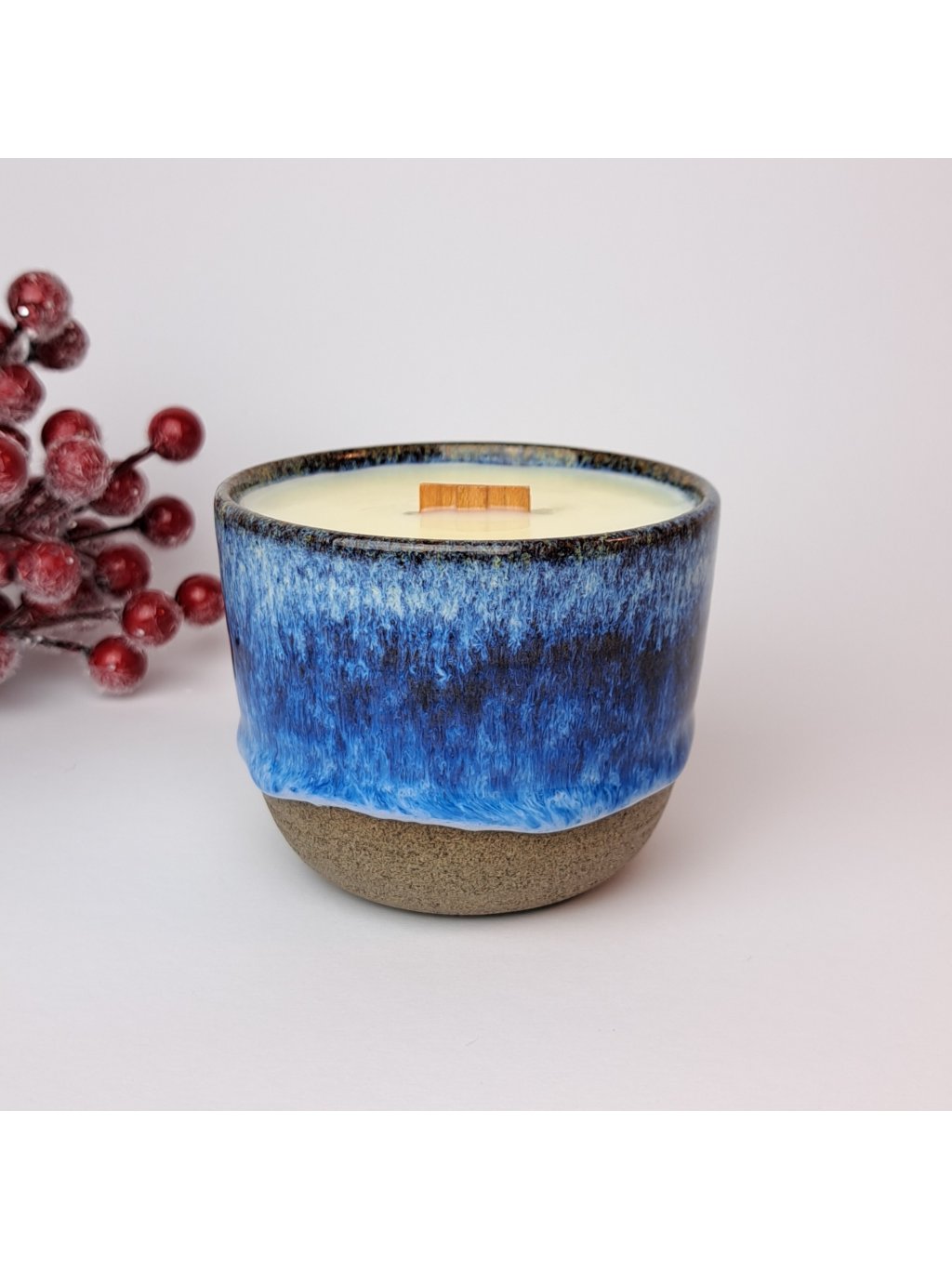Svíčka je odlita do originálního designového keramického kalíšku, vyrobeného v keramickém ateliéru BALANCE CERAMICS na zakázku. Každá sklenice je originál...