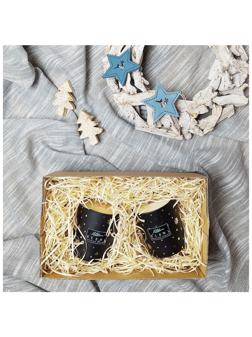 Sada SILVER BLACK - VŮNĚ VÁNOČNÍ PŘÁNÍ A ZIMNÍ OVOCE - 2 vonné sójové svíčky v dárkovém boxu