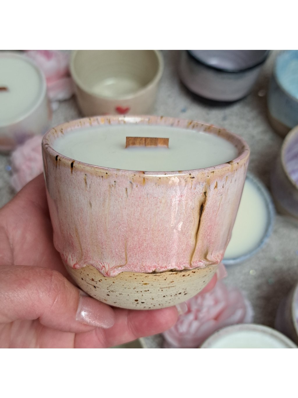 Svíčka je odlita do originálního designového keramického kalíšku, vyrobeného v keramickém ateliéru BALANCE CERAMICS na zakázku. Každá sklenice je originál...