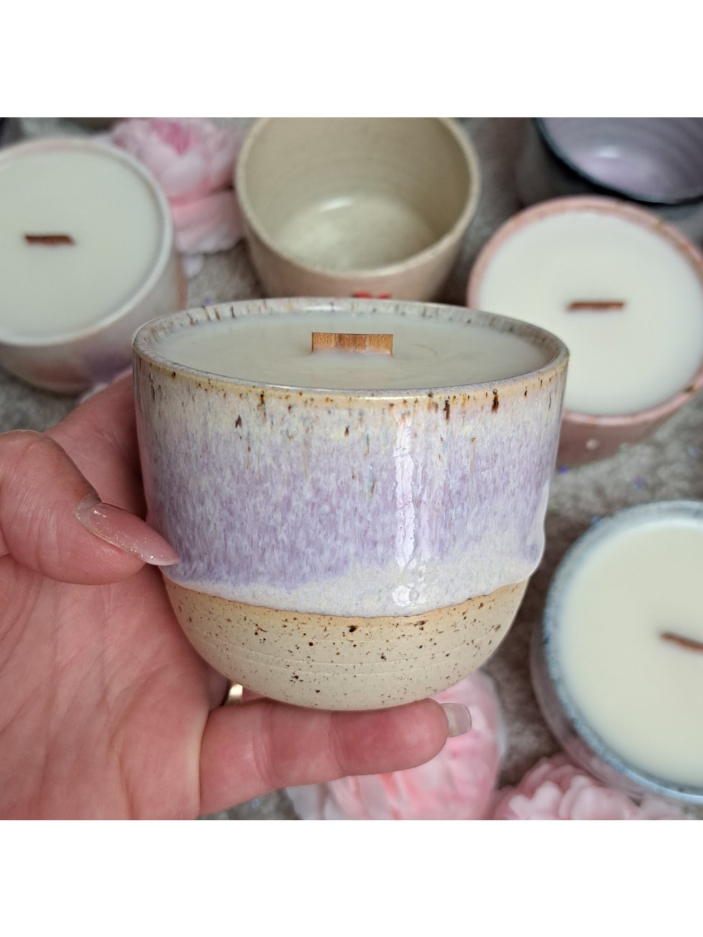 Svíčka je odlita do originálního designového keramického kalíšku, vyrobeného v keramickém ateliéru BALANCE CERAMICS na zakázku. Každá sklenice je originál...